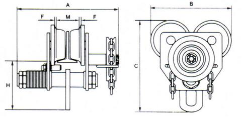 3噸五環(huán)牌GCL型手拉單軌小車規(guī)格: